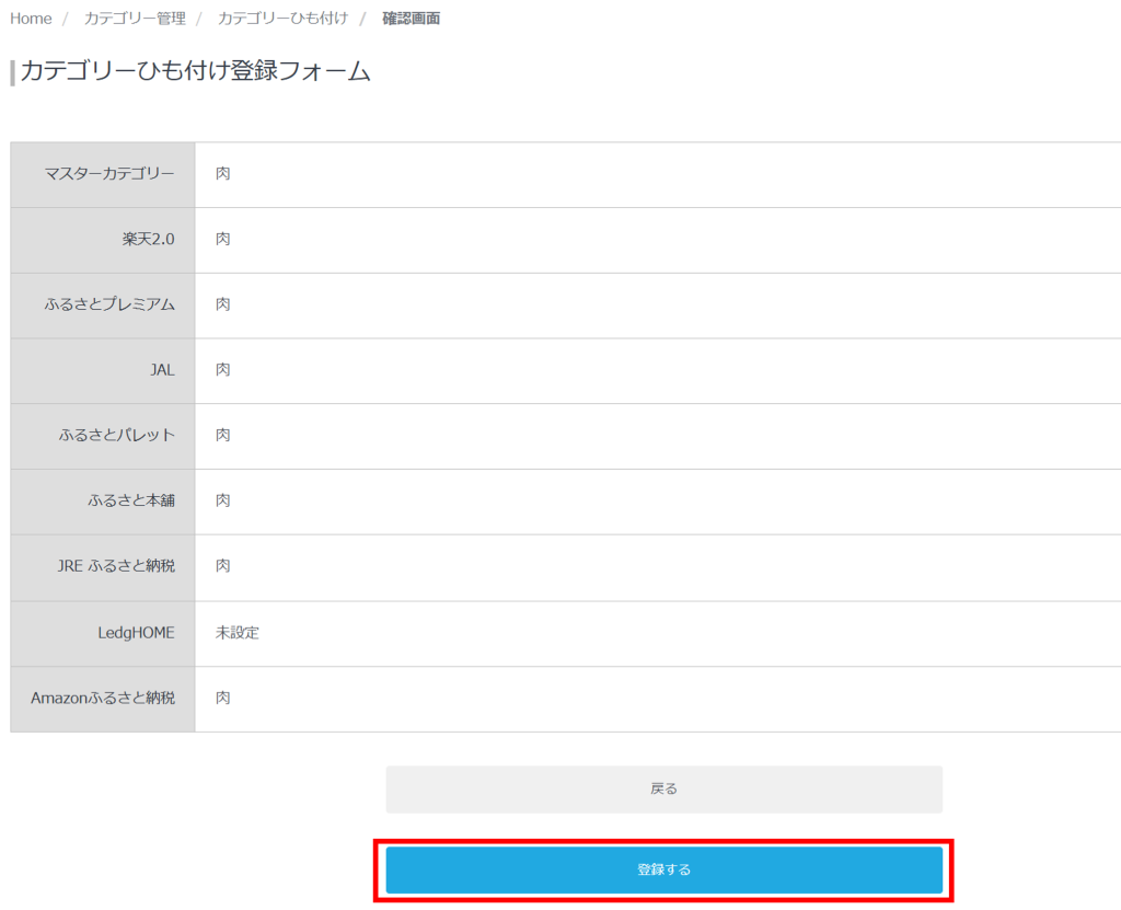 確認画面が表示されるので内容を確認し「登録する」をクリックして登録完了です。