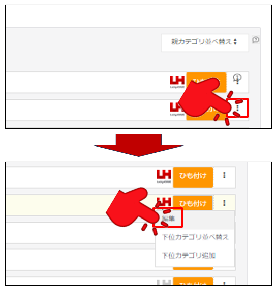 対象カテゴリの右側にあるメニューボタンを押下いただき、メニューの中から「編集」を押下ください。