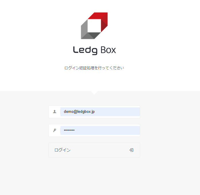 ブラウザより https://ledgbox.jp/ にアクセスすると、ログイン画面が表示されます。