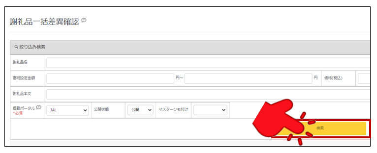 絞り込み検索に必要な内容を入力いただき、「検索」を押下ください。