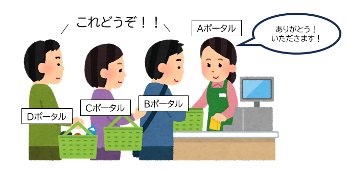 例えばA~Dのポータルがあり、Aに補充が必要である場合、