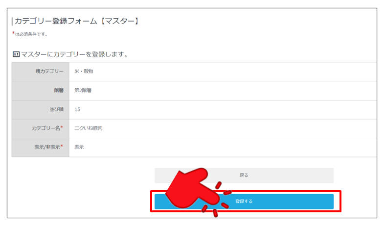 登録内容に間違いがないかご確認いただき「登録する」を押下ください。