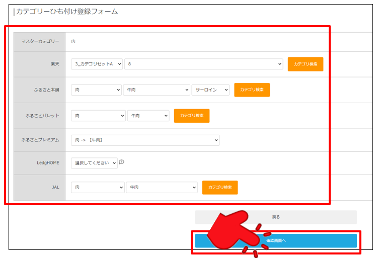 各ポータルの対象となるカテゴリを選び「確認画面へ」をクリックする。