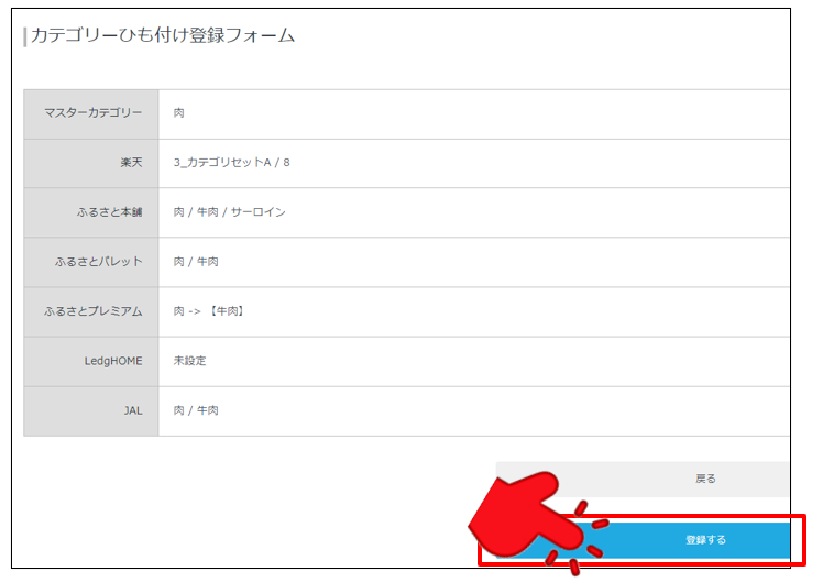 確認画面が表示されるので問題ないかを確認し「登録する」をクリックする。