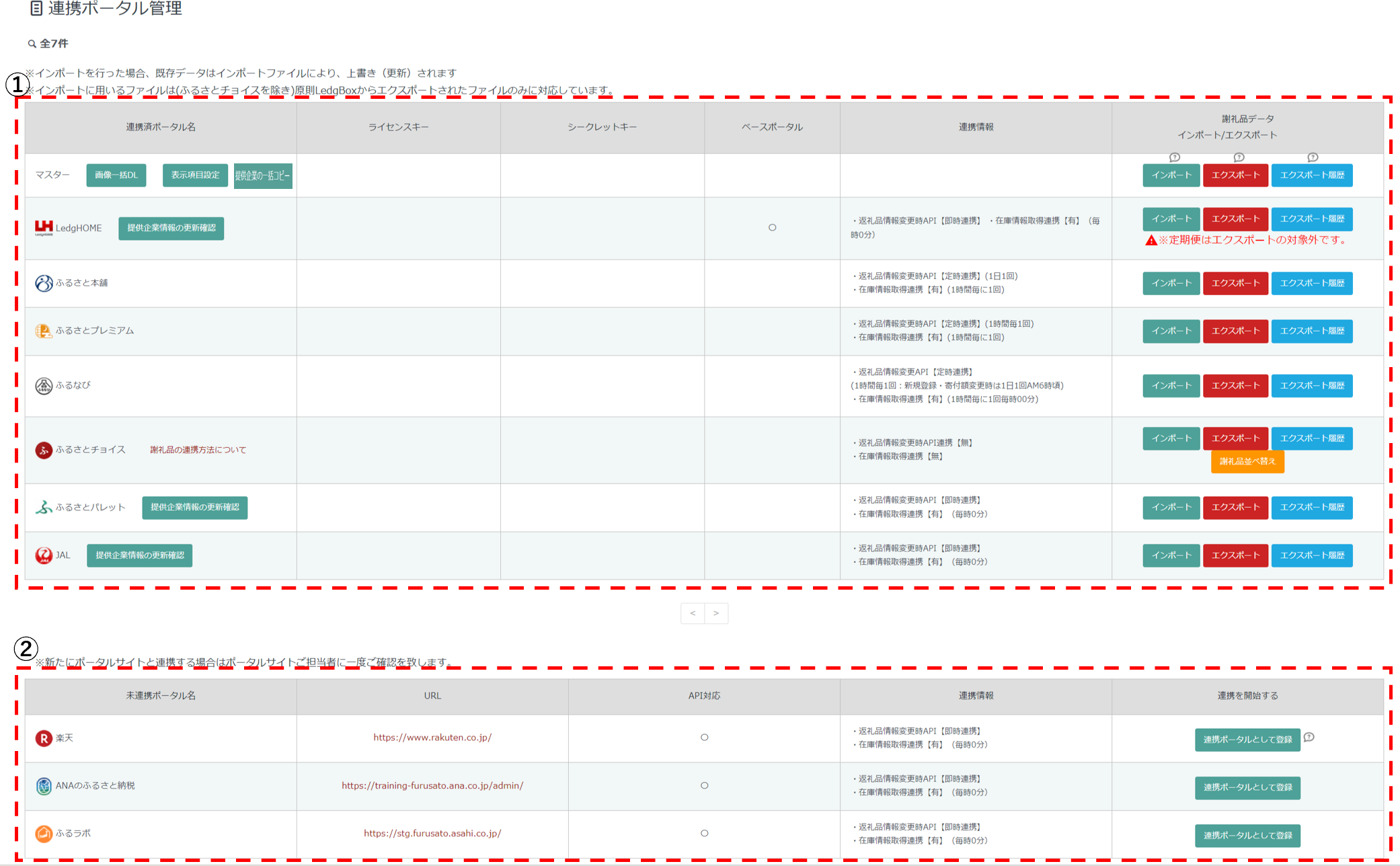 現在連携中のポータル、もしくは未連携のポータルが一覧で表示されます。