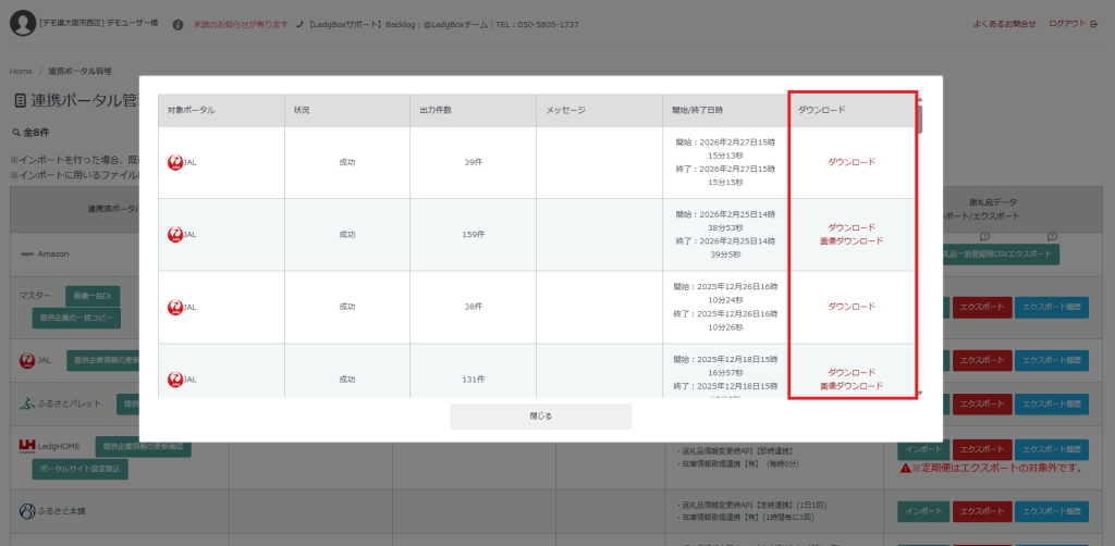 ※出力したデータは、連携ポータル管理画面にある